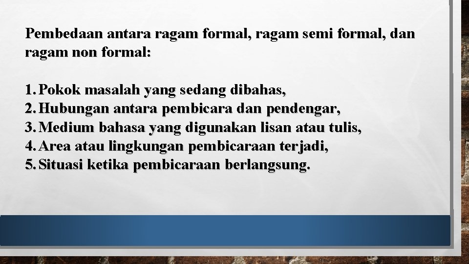 Pengertian Ragam Bahasa Non Formal - Ppt Fungsi Dan Ragam Bahasa Powerpoint Presentation Free Download Id 4247793 - “ saya sedang mempelajari bahasa indonesia”.